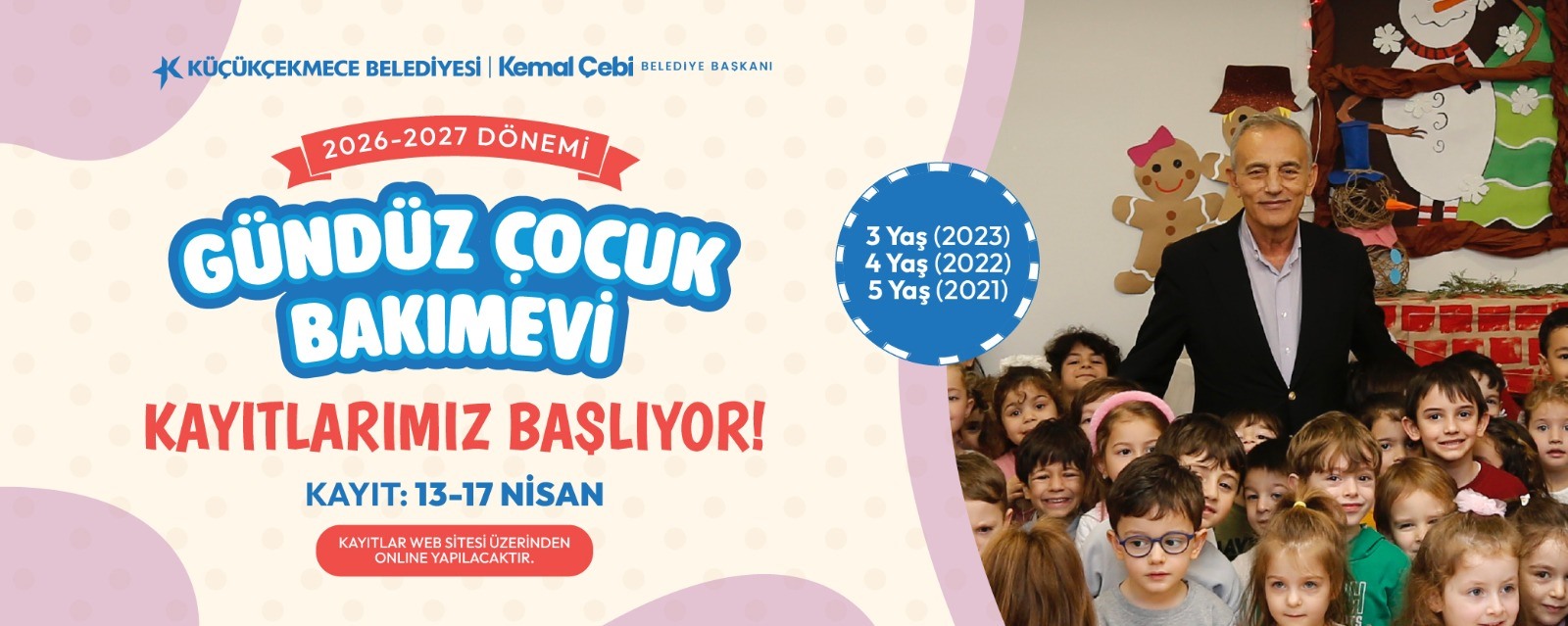 2026 - 2027 yılı eğitim öğretim dönemi gündüz çocuk bakımevleri ön kayıtları başladı! 2021,2022, 2023 doğumlu çocuklarımız için başvurunuzu yapabilirsiniz. ❤️