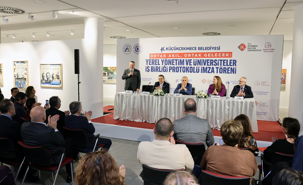“Yerel Yönetim ve Üniversiteler İş Birliği Protokolü” imza töreni Cennet Kültür ve Sanat Merkezi’nde gerçekleştirildi. Törene; Küçükçekmece Belediye Başkanı Kemal Çebi, İstanbul Arel Üniversitesi Rektörü Prof. Dr. Ersin Göse, İstanbul Aydın Üniversitesi Rektörü Prof. Dr. İbrahim Hakkı Aydın, İstanbul Kültür Üniversitesi Rektörü Prof. Dr. Fadime Üney Yüksektepe ve İstanbul Sabahattin Zaim Üniversitesi Rektörü Prof. Dr. İsmail Küçük, Küçükçekmece Belediyesi Meclis üyeleri, birim müdürleri, akademisyenler ve öğrenciler katıldı.