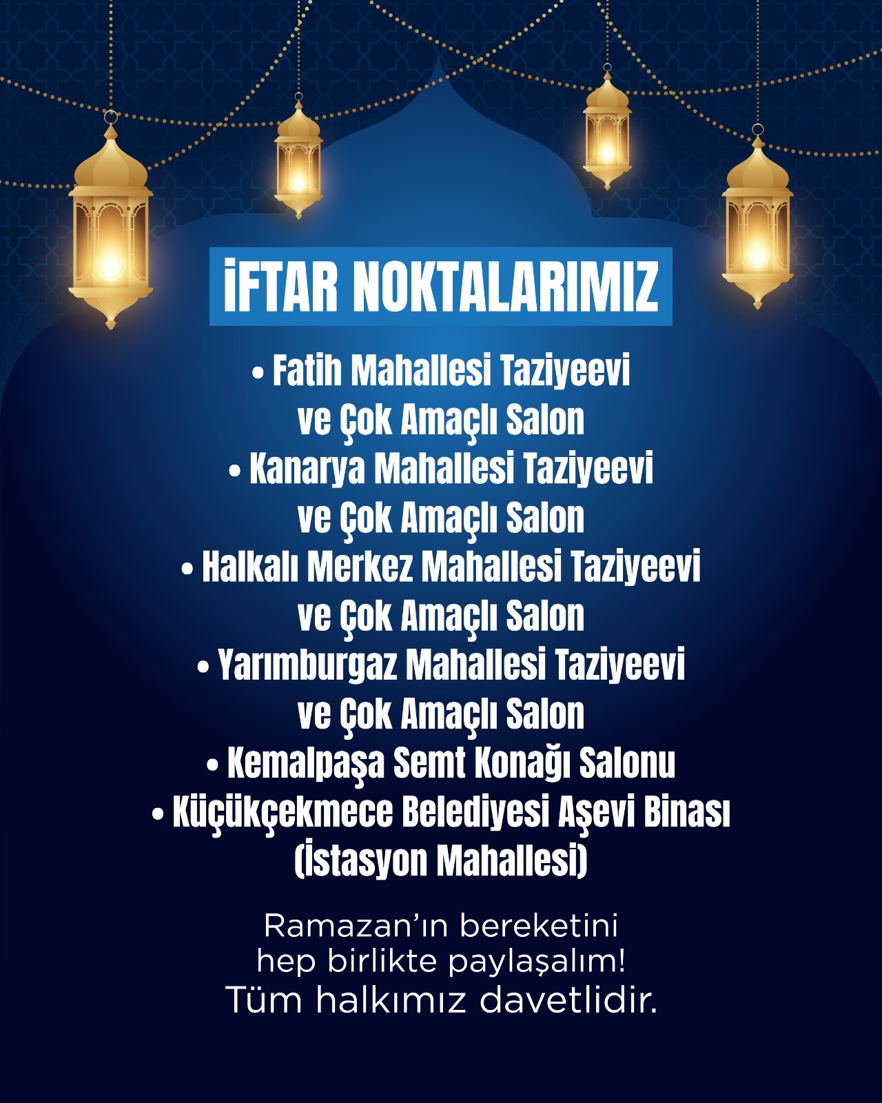 #Ramazan ayı boyunca kurulacak olan iftar sofralarımıza tüm komşularımızı bekliyoruz. Tutulan oruçlar, edilen dualar kabul olsun. 🍽️